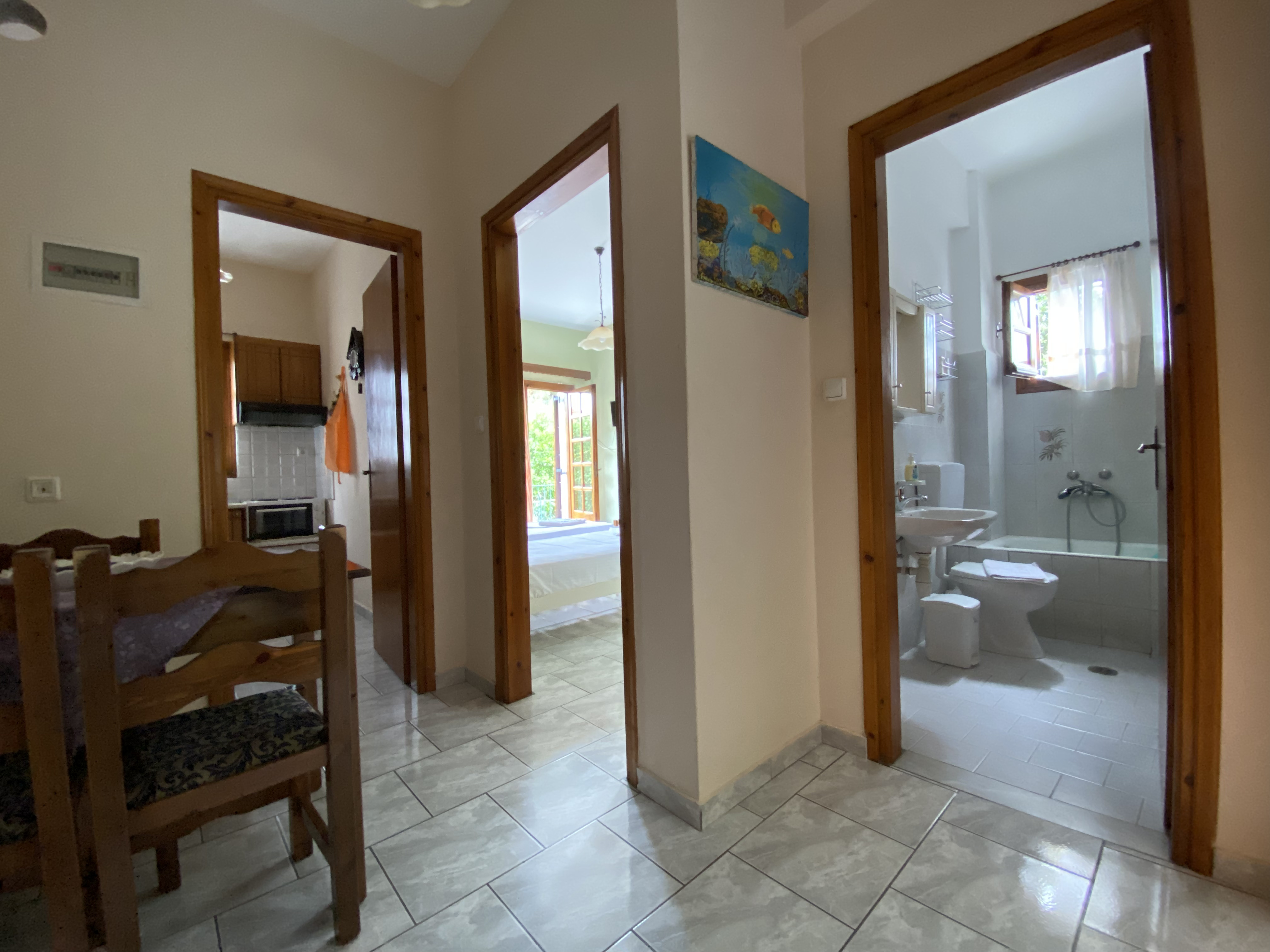 Το διαμέρισμα αυτό είναι ιδανικό για μικρές οικογένειες, προσφέροντας άνεση και λειτουργικότητα με ένα ευρύχωρο διπλό κρεβάτι. Διαθέτει πλήρως εξοπλισμένη μικρή κουζίνα και μπάνιο με ντους, καθώς και ένα όμορφο μπαλκόνι με θέα στον καταπράσινο κήπο.