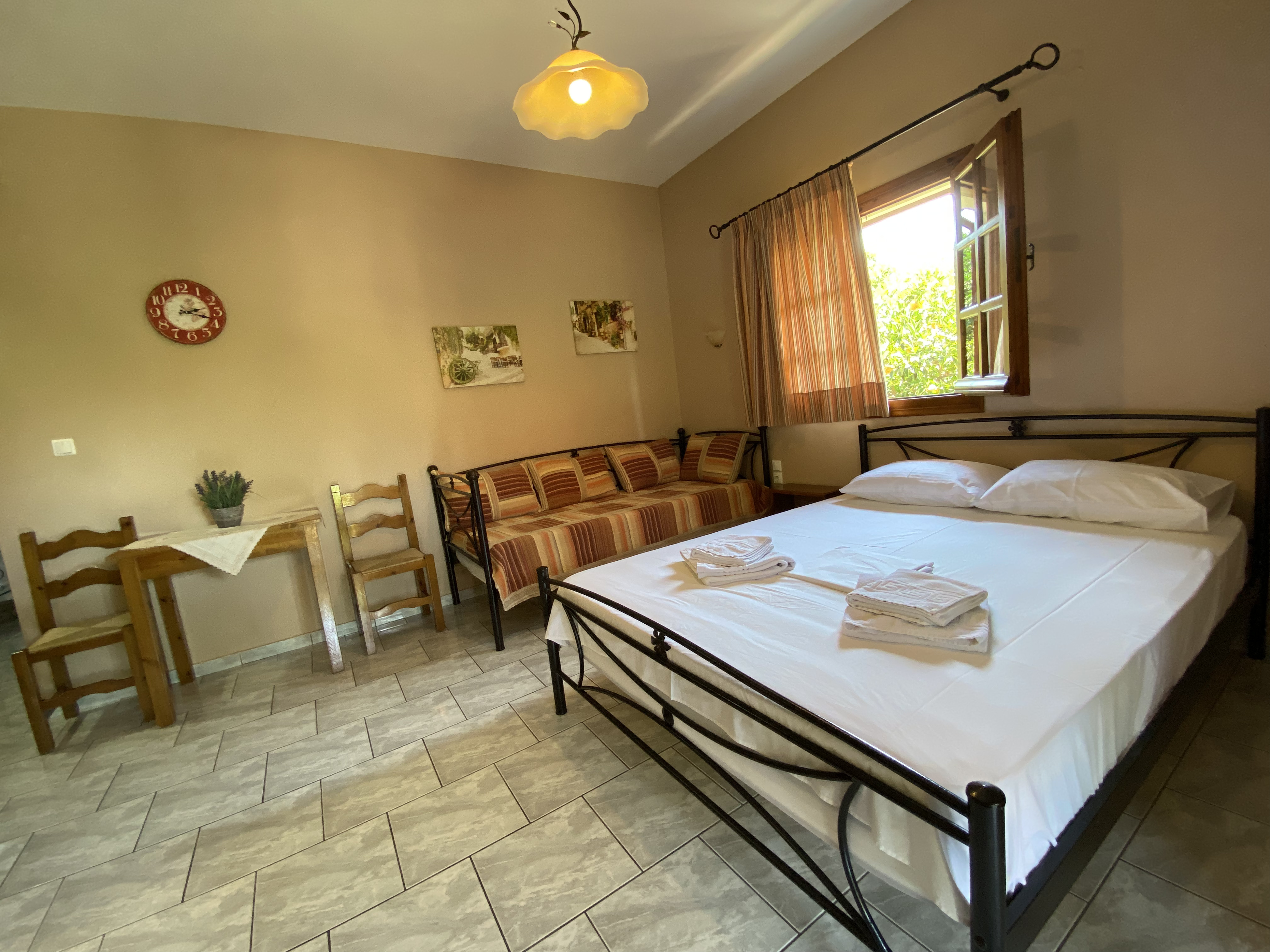 Το στούντιο είναι ιδανικό για 2 ενήλικες, προσφέροντας άνεση και λειτουργικότητα. Διαθέτει ένα ευρύχωρο διπλό κρεβάτι. Η μικρή κουζίνα είναι εξοπλισμένη με τα απαραίτητα για την προετοιμασία γευμάτων, ενώ το μπάνιο διαθέτει ντους και WC για την καθημερινή σας άνεση.